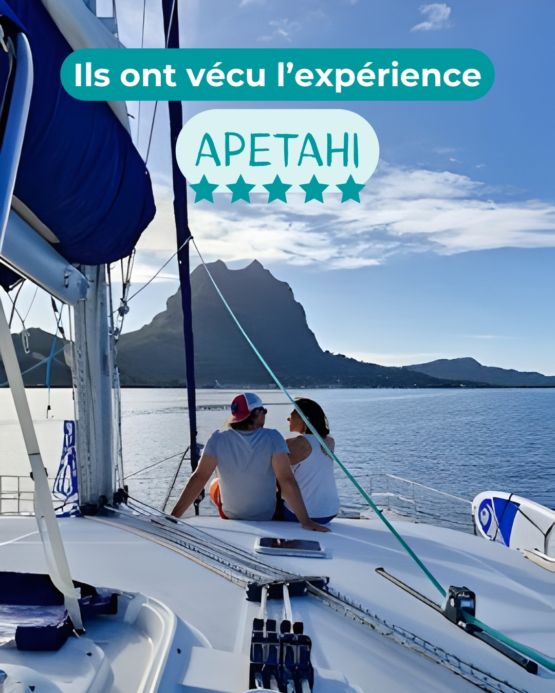 Apetahi vous permet de vivre Bora Bora autrement : baignade au réveil, navigation douce, déjeuner face au lagon, snorkeling, kayak, apéritif au coucher du soleil et nuit au mouillage.